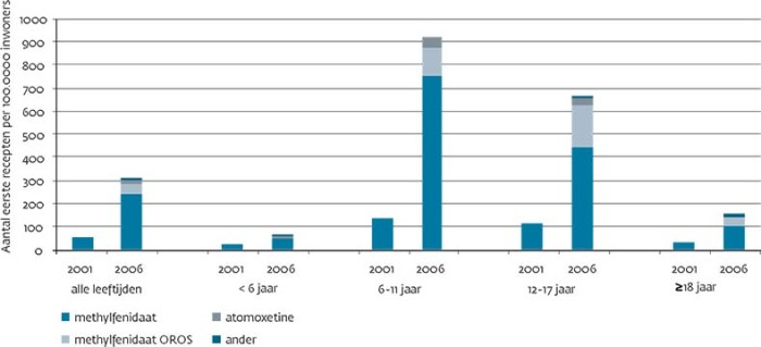 - 10.↲Van den Ban E, Souverein P, Swaab H, Van Engeland H, Heerdink R, Egberts T. Trends in incidence and characteristics of children, adolescents, and adults initiating immediate or extended-release methylphenidate or atomoxetine in the Netherlands during 2001-2006. J Child Adolesc Psychopharmacol 2010;20:55-61.