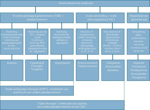 Orale anticoagulantia zijn vooral van waarde bij een verhoogd veneus trombotisch risico, plaatjesremming bij een verhoogd arterieel trombotisch risico.