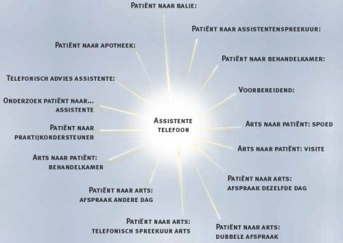 De Stichting Kwaliteit en Ontwikkeling Huisartsenzorg in Eindhoven (www.stichtingkoh.nl) heeft op initiatief van huisartsen Nelleke Gruijters, Thea Toemen en ondergetekende een cursus Instroommanagement ontwikkeld: ‘Het zonnetje in huis’. Het is meer dan alleen een vaardigheidstraining voor praktijkassistentes. Het programma focust sterk op de rol van de huisarts en op de samenwerking tussen assistentes en huisarts. ‘Gewenste bijwerking’ is dat na de cursus de huisartsen en assistentes zelfstandig doorgaan met de training: de trainer maakt zichzelf overbodig. Centraal staat het digitaal opnemen van telefoongesprekken. Daar wordt met elkaar naar geluisterd waarna met behulp van de ‘HAAK-lijst’ – een gevalideerd toetsinstrument – feedback wordt gegeven onder het motto ‘wat gaat goed en wat kan beter’. Vaardigheden worden direct getraind.