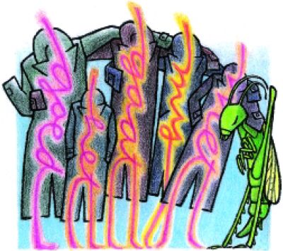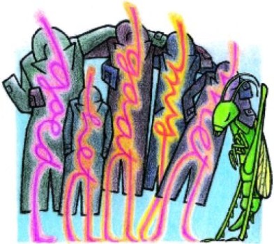 Beste krekel, Met mij gaat het ook goed. De tor Toen begon de krekel te huilen. Grote stromen tranen vloeiden langs zijn wangen en langs zijn vleugels en zijn voelsprieten en zijn voeten. Zijn schouders schokten. Het was de treurigste brief die hij ooit had gelezen.