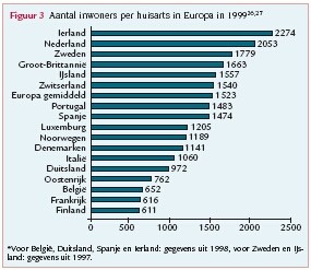 Uit WHO-gegevens blijkt dat de Nederlandse huisarts in vergelijking met de situatie in andere Europese landen een behoorlijk grote praktijk heeft ( figuur 3).