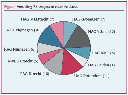 In overleg met projectleiders van de acht afdelingen huisartsgeneeskunde in ons land, het NIVEL en het Centre for Quality of Care Research (WOK), stelden we een lijst op van onderzoeksprojecten die voldeden aan de volgende criteria: