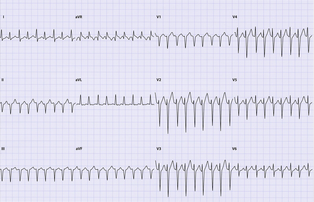 Anamnese: De patiënt is 10 minuten eerder gefinisht op de halve marathon, met een nieuw persoonlijk record. Ze heeft het idee dat haar hartslag na de finish hoger is dan tijdens de wedstrijd. Ze had dit gevoel al direct na de finish en het trekt niet weg. Ze is duizelig en heeft het idee flauw te gaan vallen. Ze heeft geen pijn op de borst. Ze heeft nooit gerookt en is niet familiair belast voor hart- en vaatziekten.