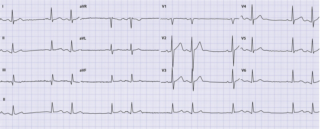 Anamnese: De patiënt heeft jaren geen atriumfibrilleren gehad, maar heeft nu het idee dat het terug is. Hij ervaart een vreemd gevoel op de borst en een onregelmatige hartslag. Verder heeft hij geen klachten. Hij leeft gezond, beweegt en heeft nooit gerookt.