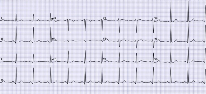 - Ritme| SR. Normale regelmatige P-toppen, steeds gevolgd door QRS-complexen.