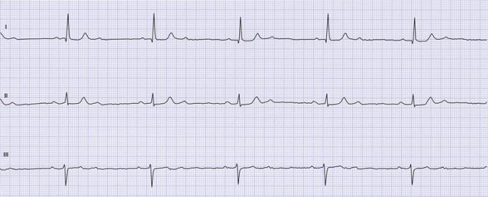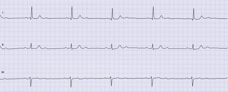 De huisarts stelt een bradycardie vast, mogelijk bij een geleidingsstoornis, mogelijk bij ischemie. Hij blijft ter plaatse en laat met spoed een ambulance komen. Er wordt een spoed-ecg gemaakt.