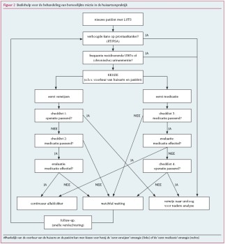 Voortbouwend op de benadering waarin huisartsen anticiperen op het waarschijnlijke beleid van de uroloog hebben we een beslismodel ontwikkeld (figuur 2). De huisarts kan aan de hand van simpele checklists een rationele behandelingsstrategie volgen die zowel over- als onderbehandeling tegengaat.