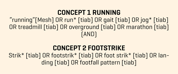 Een PubMed-search met de zoektermen ‘running’ en ‘footstrike’ [figuur] plus een systematische review (SR)-filter leverde 25 hits op, waaronder 1 relevante SR van Anderson et al.3 Zoeken vanaf de zoekdatum van de SR (21 april 2019) met de 2 zoektermen leverde op 13 april 2020 227 hits op voor title/abstract screening. Dit resulteerde in 2 artikelen, die we na beoordeling van de volledige tekst excludeerden omdat ze zich alleen richtten op biomechanica en klinische onderzoeksresultaten ontbraken. Beoordeling van de SR van Anderson et al. leverde 2 onderzoeken van Roper en Cheung op, die wel naar klinische uitkomsten keken, maar voor de review waren geëxcludeerd omdat ze minder dan 10 deelnemers per interventie telden. Het onderzoek van Cheung excludeerden we alsnog omdat het slechts 3 patiënten betrof en er geen controlegroep was.45