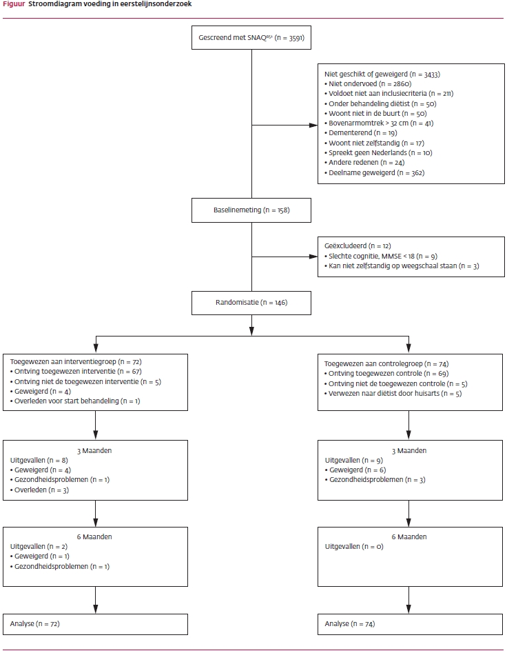 Er is nog geen onderzoek gedaan naar de behandeling van ondervoede thuiswonende ouderen door een diëtist.