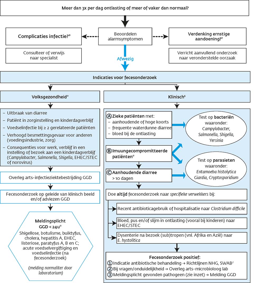 Plots ontstane diarree is in de regel het gevolg van een infectie en heeft een kort en ongecompliceerd beloop waarbij fecesonderzoek niet zinvol is.