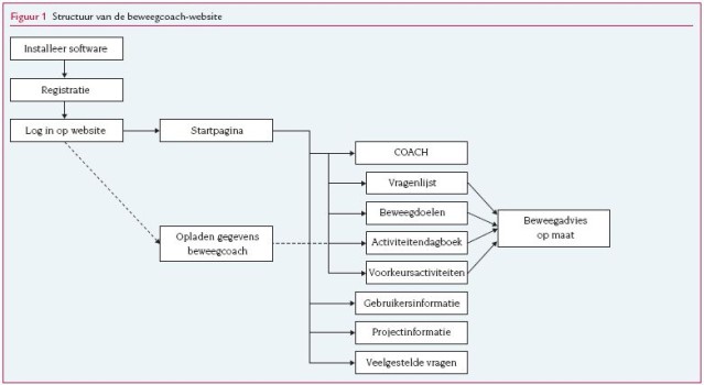 Na de randomisatie kregen de deelnemers van beide onderzoeksgroepen het advies hun lichamelijke activiteit te verhogen. De controlegroep kreeg een informatiebrochure met een algemeen beweegadvies en beknopte informatie over de gezondheidseffecten van lichamelijke activiteit en de Nederlandse norm gezond bewegen (deze brochure is gratis verkrijgbaar bij de Nederlandse Hartstichting). De interventiegroep gebruikte drie maanden lang de bewegingsmeter en de beweegcoach.21