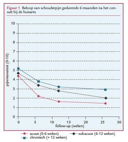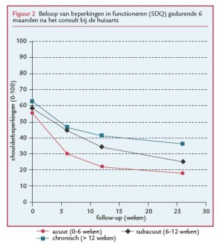 - Is het beloop verschillend voor patiënten met acute, subacute en chronische schouderklachten?