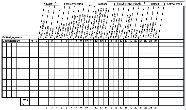 - Noteer gedurende enkele dagen tijdens het spreekuur op welke gebieden uw kennis en vaardigheden lacunes vertonen.