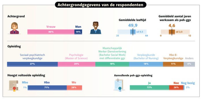 De vragenlijst is volledig ingevuld door 407 poh’s-ggz (42%). De [infographics] tonen de resultaten van het onderzoek.