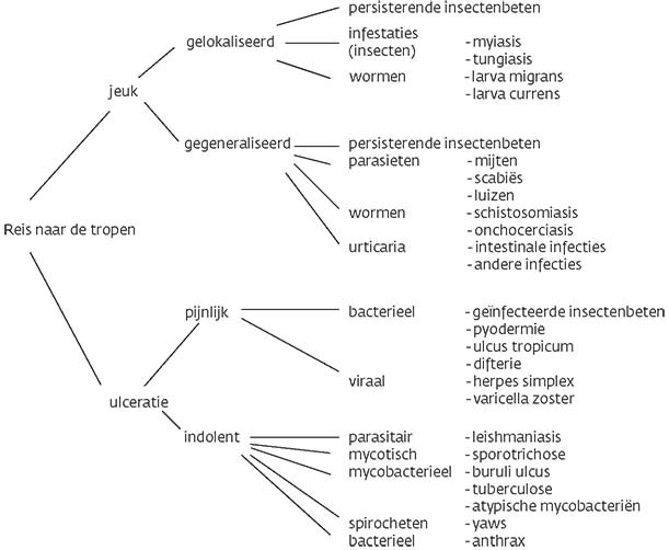 | Myiasis | Furunkelachtige huidafwijkingen met insteekopening | Zuid-Amerika, de Caraïben, Zuidoost-Azië en Sub-Sahara-Afrika |