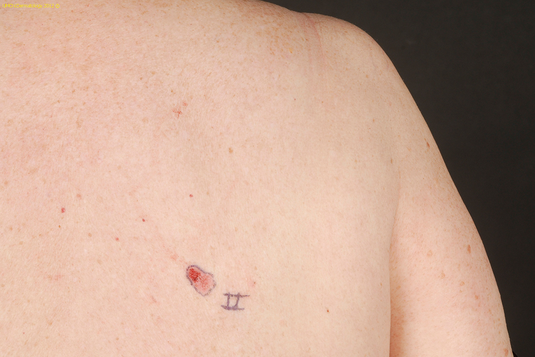 Figuur | Voorbeeld van een patiënt met een superficieel basaalcelcarcinoom op de rug.