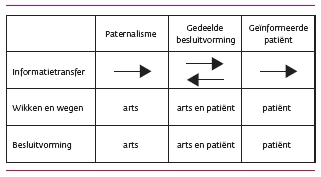 Dat als de patiënt dat wenst, hij of zij actief deel kan nemen aan de besluitvorming. De keuzehulp beschrijft een stappenplan ten behoeve van de besluitvorming en de mogelijke rol van de patiënt daarin.