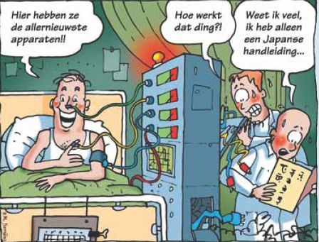 Helaas heb ik hier al eerder moeten memoreren dat aan mijn lijf regelmatig onderhoud wordt verricht, noodzakelijk om mij op de been en aan het schrijven van dit soort stukjes te houden. Nu ga je als mondige patiënt natuurlijk niet over één nacht ijs. Nee, je oriënteert je via internet, bekijkt de ziekenhuis-tophonderd van het AD en informeert bij mensen die het weten kunnen. Artikelen over de betreffende aandoening en de bijwerkingen van in het vooruitzicht gestelde medicijnen zorgen voor een hoop slapeloze nachten. Niet zelden denk ik: als het zó moet, ben ik net zo lief niet ziek! Dan komt een belangrijke keuze: ga je naar een perifeer of naar een academisch ziekenhuis? De meeste leken snappen dit probleem niet. Natúúrlijk ga je naar een academisch ziekenhuis! Daar hebben ze immers de laatste snufjes, de beste specialisten en de meest geavanceerde apparaten? En zo is het maar net…