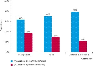 De helft (50%) van de zorggebruikers denkt dat er een belemmering ontstaat voor een, in hun ogen noodzakelijk, bezoek aan de huisarts als daarvoor een eigen bijdrage geldt; 43% denkt van niet en 7% weet het niet. Voor zorggebruikers die hun gezondheid als matig/slecht beoordelen, ontstaat vaker een belemmering (65%) dan voor zorggebruikers die hun gezondheid als zeer goed/uitstekend (36%) ervaren. Ook denken zorggebruikers met een lager inkomen (< 1750 euro netto per maand) vaker dat er een belemmering ontstaat dan zorggebruikers met een hoger inkomen (> 2700 euro netto per maand), respectievelijk 59% en 35%. Zorggebruikers met een lager inkomen ervaren hun gezondheid vaker als slecht/matig dan zorggebruikers met hogere inkomens. Maar zowel inkomen als gezondheid zijn van invloed op de te verwachte belemmeringen wanneer beide in één analyse worden meegenomen.