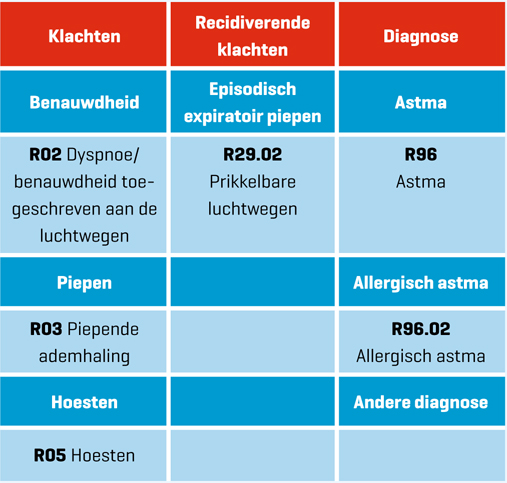 Figuur | Overzicht ICPC-codes bij astma