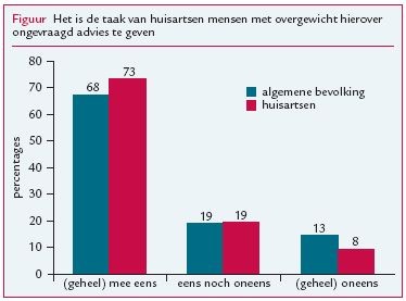 Onderzoek uit de jaren negentig toonde aan dat huisartsen vaak pas advies over overgewicht gaven als er gezondheidsklachten waren of als een patiënt er zelf om vroeg. Patiënten stonden destijds kritisch tegenover ongevraagd advies door de huisarts. De CBO-richtlijn ‘Diagnostiek en behandeling van obesitas bij volwassenen en kinderen’ (2008) bevestigt dat huisartsen overgewicht vaak niet bespreken door gebrek aan tijd, voorlichtingsmateriaal of training en omdat ze bang zijn voor negatieve reacties van patiënten. Maar de richtlijn stelt ook dat het bij overgewicht belangrijk is preventieve adviezen te geven om verdere gewichtsstijging te voorkomen. Ook de nieuwe NHG-Standaard Obesitas (2010) onderstreept het belang van preventie. Hoe denken huisartsen hier inmiddels zelf over? Zien zij advies over overgewicht als hun taak? En wat vindt de algemene bevolking?