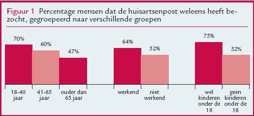 Ruim de helft van de respondenten heeft de huisartsenpost weleens bezocht. Vooral jongeren, werkenden en mensen met kinderen onder de 18 jaar geven vaker aan de huisartsenpost te bezoeken dan anderen.