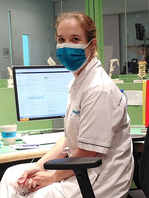 Grote voordelen van starten in coronatijd? Dat je snel onderdeel van het team wordt, veel leert over triage en digitale consultvoering en bovenal dat je leert anticiperen op plots veranderende omstandigheden. En onze coronagroep? Die is behoorlijk hecht en gezellig. We hebben laatst onze eerste ‘distance disco’ gehad. Ik kijk nu al uit naar de groepsreünie over 5 jaar, waarin we hopelijk zonder mondkapje of 1,5 meter afstand nog eens zullen terugblikken op deze bijzondere start van de opleiding.