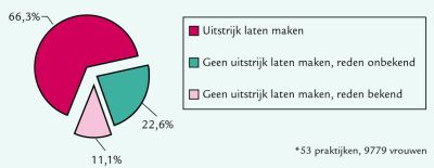 Van de overige vrouwen is de reden om zich niet te laten uitstrijken niet teruggevonden. Hierbij gaat het waarschijnlijk in de eerste plaats om echte non-respons in de zin dat de vrouw uit onbekende overwegingen, die vermoedelijk met angst, ongemak of praktische belemmeringen te maken hebben, niet verschijnt naar aanleiding van de oproep. Daarnaast kan het hier gaan om onvolledigheid van het elektronisch medisch dossier (bijvoorbeeld niet-geregistreerde zwangerschappen). Correctie voor medisch geëigende redenen om niet deel te nemen levert een opkomstpercentage van 74,2% en geeft meer inzicht in de daadwerkelijke prestatie van de uitvoerenden van het bevolkingsonderzoek.