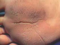Simone, 18 jaar en fanatiek sporter, heeft putjes aan haar voetzolen. Deze variëren in grootte en soms laat de huid los. Zwinkers ziet voeten als op onderstaande afbeelding.