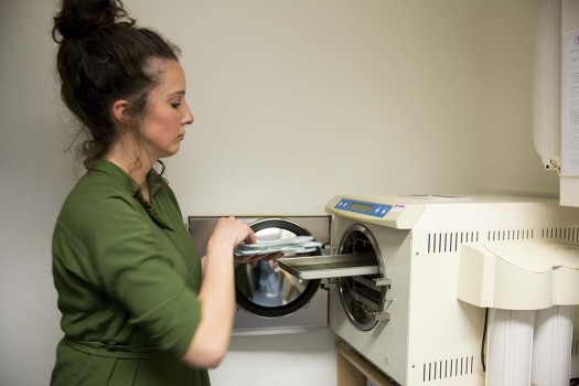 • Kritisch instrumentarium én specula worden gesteriliseerd na gebruik.