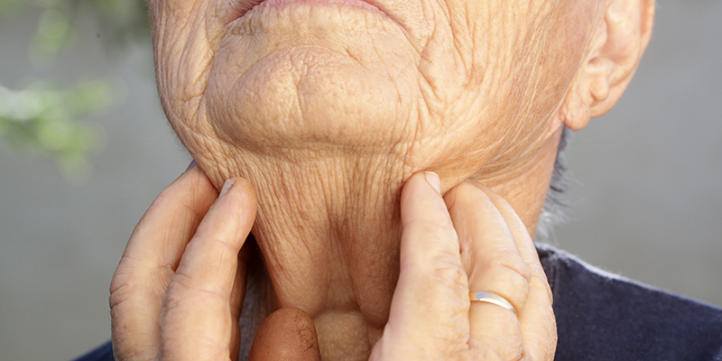 Inspecteer en palpeer hierna de hals en de lokale lymfeklieren. Wees alert op eerdere operaties of verwondingen, schildklierpathologie en maligniteiten. Beoordeel ook keel, neus en luchtwegen om een acute of chronische laryngitis uit te sluiten.