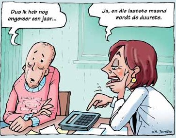 Ik heb hetzelfde gedaan en blijf daarover met grote twijfels zitten. Natuurlijk is het hard als je iemand de hoop ontneemt door aannemelijk te maken dat de kansen op genezing klein zijn en de naderende dood dus onvermijdelijk. Maar, zo pijnig ik mezelf nog steeds, wie heb ik nou beschermd toen ik meeging in valsehoopverhalen: de patiënt of mijzelf? Ik weet het zeker: alle vier patiënten zouden het hun omgeving - en dus ook mij - tijdens hun vreselijke ziekenhuisellende kwalijk hebben genomen als ze zich hadden gerealiseerd dat wij vrij zeker wisten wat hen te wachten stond. ‘Maar je wilde het niet horen!’, zou ik tegenwerpen. ‘Dan had je wel eens wat meer mogen aanhouden’, hoor ik hen repliceren. En ik besef dat het leven soms moeilijk is…