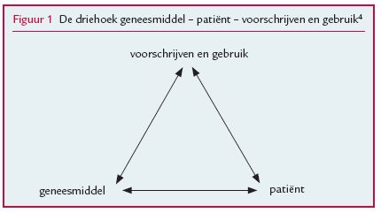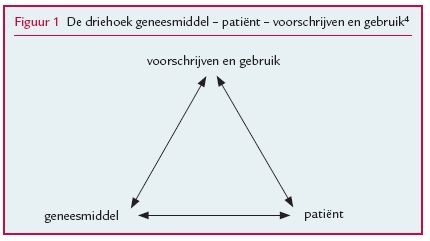 Het ‘HARM-onderzoek’, een recent multicentrisch, prospectief onderzoek naar geneesmiddelgerelateerde ziekenhuisopnamen in Nederland, laat zien dat een betere balans mogelijk is tussen werkzaamheid en veiligheid van de individuele geneesmiddelentherapie in de dagelijkse praktijk.1 In dit onderzoek bleek dat 2,4% van het totaal aantal ziekenhuisopnamen en 5,6% van alle niet-geplande ziekenhuisopnamen gerelateerd was aan geneesmiddelengebruik. Hiervan was 46% potentieel vermijdbaar. Geëxtrapoleerd naar heel Nederland gaat het om 19.000 gevallen per jaar. Een illustratief voorbeeld van potentieel vermijdbare problemen in Nederland zien we in een recent onderzoek van Van der Linden. Hieruit bleek dat 27% van de geneesmiddelen waarmee men in het ziekenhuis was gestopt vanwege een bijwerking, binnen zes maanden in de huisartsenpraktijk weer werd voorgeschreven.2 De interacties in de driehoek ‘geneesmiddel – patiënt – voorschrijven en gebruik’ (figuur 1) bepalen de uiteindelijke balans tussen werkzaamheid en veiligheid. De dagelijkse praktijk verschilt van de sterk gecontroleerde clinical trial: het handelen van professionals en patiënten blijkt een belangrijke maar nogal onvoorspelbare modulerende invloed te hebben op de intrinsieke risico’s van geneesmiddelen.3 Met andere woorden: niet alleen de farmacologische en moleculaire eigenschappen van het geneesmiddel bepalen de veiligheid en het succes, maar ook de optimale keuze voor en het juiste gebruik door de individuele patiënt.4 De vele wetenschappelijke onderzoeken stimuleerden een publiek debat over patiëntveiligheid in het algemeen en medicatiefouten in het bijzonder.56