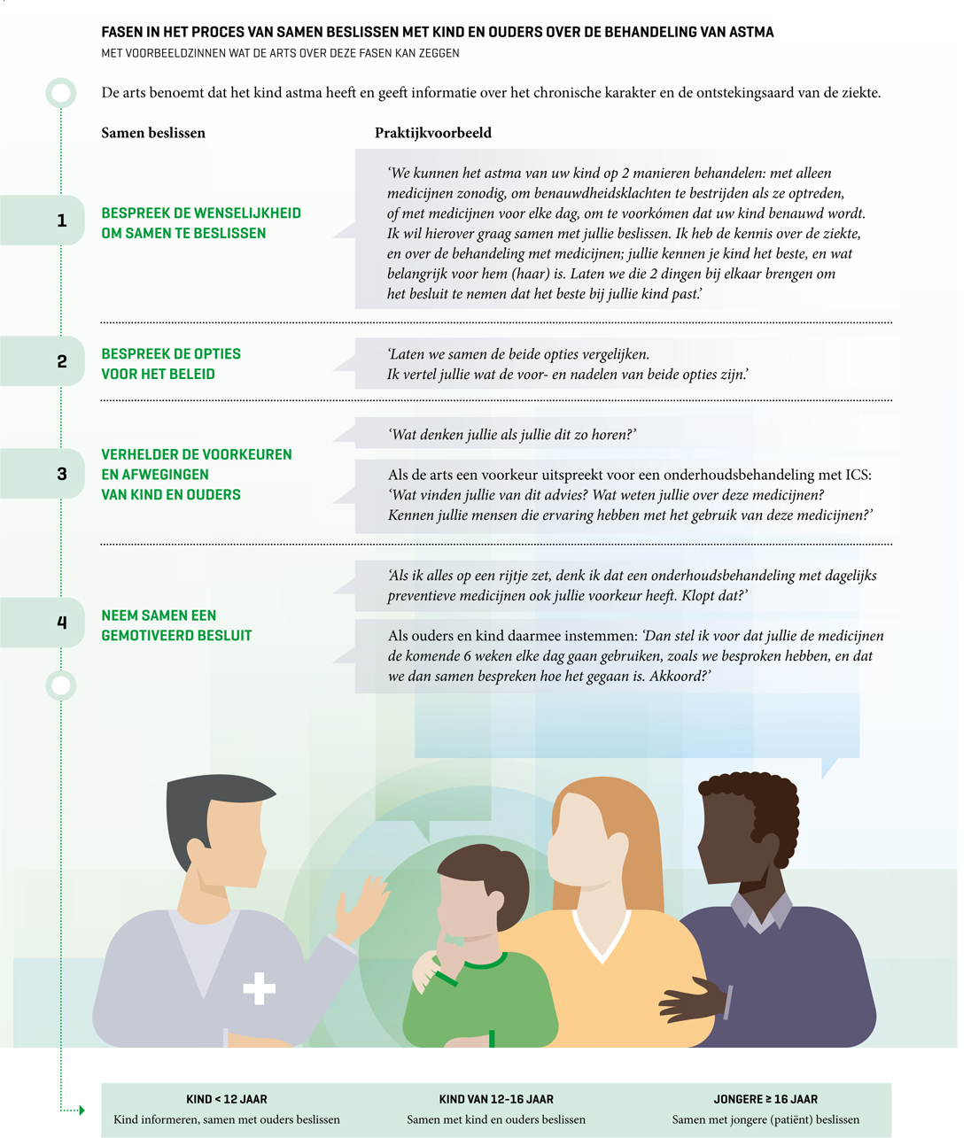 Infographic 1 | Fasen in het proces van samen beslissen met kind en ouders over de behandeling van astma