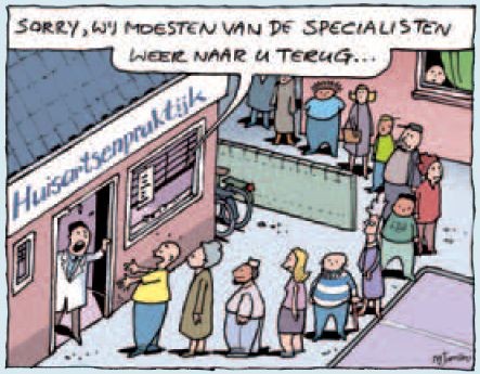 Als u dit leest, weet u al hoe de specialistenacties op 1 juli zijn verlopen. Ik kan voorlopig alleen maar fantaseren. De specialisten verzetten zich tegen plannen van de minister om de ziekenhuizen een grote rol bij hun salariëring te laten spelen en willen tevens het beeld corrigeren als zouden zij graaiers zijn. Ik vernam dat het plan bestaat om op of vanaf 1 juli nog uitsluitend het hoognodige te doen… Van zo’n bericht moeten toch allerlei organisaties en instanties opveren! Kleine ingrepen die kunnen wachten, worden dan terugverwezen naar de huisarts. Dat komt mooi uit, want in de plannen van de minister is deze uitvoerende huisartsentaak al volledig opgenomen. De frequentie van allerlei controles wordt gehalveerd als het niet nog minder gaat worden. Laat dat nou gewoon zonder problemen blijken te kunnen! De vele infectiegevallen in het ziekenhuis nemen uiteraard af. Het aantal (al dan niet-vermijdbare) fouten wordt lager. Er worden minder vaak royale specialistische prescripties uitgeschreven. De dikte van botten wordt alleen nog maar gemeten als het echt nodig is. En vrouwen met een goed verlopende zwangerschap wordt gezegd dat ze maar thuis moeten bevallen… Nog even en ik zit een idealistische beschrijving te geven van wat al jaren voor ogen staat bij een eerste lijn met terughoudendheid hoog in het vaandel: namelijk een tweede lijn waarin alleen maar wordt gedaan wat echt nodig is. De politieke partijen willen en moeten bezuinigen, dus die zijn hoogst nieuwsgierig naar alles waar we blijkbaar zonder kunnen. De zorgverzekeraars zijn al voor elk specialisme nieuwe, uitgeklede pakketjes aan het voorbereiden. En de mensen? Ach, de mensen zullen aanvankelijk bang zijn dat ze van alles tekortkomen. Maar als de specialisten het lef hebben om even door te zetten en de acties wat langer laten duren, komen we met z’n allen tot de ontdekking dat het met veel minder ook heel goed kan. We krijgen een uitgelezen kans om de specialistenzorg te evalueren. Moet echt alles wat kan? Hebben de mensen niet veel te hoge verwachtingen? Worden de voordelen wel voldoende tegen de nadelen afgewogen? Kunnen veel dingen niet door ‘lagere’ echelons – dichter bij de patiënt en goedkoper – worden verzorgd?