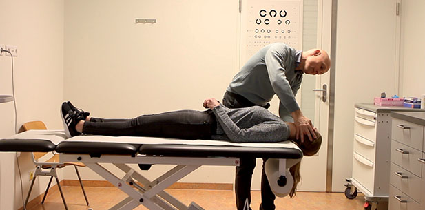 Omdat mevrouw Van Vliet toch graag behandeling wil, voert u bij haar de epleymanoeuvre uit.