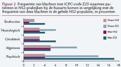 De hier beschreven analyses zijn uitgevoerd met gegevens die van 1996-1999 werden geregistreerd door huisartsen die deel uitmaken van de Continue Morbiditeits Registratie Peilstations Nederland. Dit netwerk bestaat uit een groep van ongeveer 45 praktijken die 1% van de Nederlandse patiëntenpopulatie representeren. Bovendien is gebruikgemaakt van gegevens uit de Tweede Nationale Studie (NS2) naar ziekten en verrichtingen in de huisartspraktijk. Honderdvijfennegentig huisartsen in 104 praktijken registreerden deze gegevens via het HIS gedurende 12 maanden in 2001. (http://www.ggzbeleid.nl/pdfmacro/nivel_2estudie_0501_hst4.pdf).
