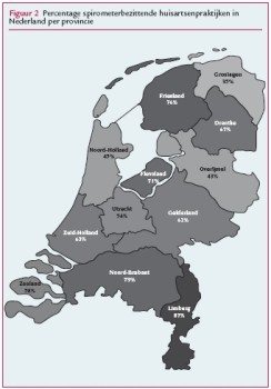 - Anno 2007 beschikken vrijwel alle Nederlandse huisartsenpraktijken over een faciliteit voor spirometrie, bijna tweederde beschikt zelfs over een eigen spirometer.