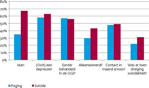 Sinds 2007 is het aantal suïcides in Nederland flink toegenomen, vooral onder mannen tussen de 40 en 60 jaar. Om suïcidepreventie in Nederland te verbeteren is in 2011 de richtlijn Diagnostiek en Behandeling van Suïcidaal Gedrag verschenen. Huisartsen hebben hierin een belangrijke taak en waren daarom nauw betrokken bij het opstellen van de richtlijn. De huisarts behoort bij patiënten met suïcidale gedachten, maar zonder concrete plannen, een psychiatrische anamnese af te nemen en naar depressieve symptomen te vragen. Patiënten mét concrete plannen dienen te worden doorverwezen naar een bevoegd en bekwaam hulpverlener. Wij vroegen huisartsen tussen 1983 en 2013 naar kenmerken van de patiënten die een suïcidepoging deden of overleden door suïcide [kader].