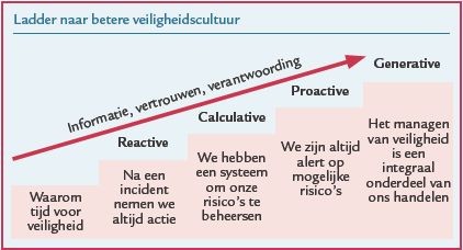 Maar er zijn ook positieve kanten. Zorginstellingen zijn vaak ‘Centers of excellence waar zeer gemotiveerde mensen werken voor de gezondheid van hun patiënten, met de spirit of a winning team’. Vanaf 1 januari 2008 hebben ziekenhuizen een gecertificeerd veiligheidssysteem (of ze moeten dat hebben). Willems bepleit met klem veiligheidsmanagement door huisartsen, want: ‘Fouten blijven gemaakt worden, maar u heeft dan een systeem waarmee u aantoonbaar uw risico’s analyseert en aanpakt. Dat kan u heel veel geld besparen als het gaat komen tot schadeclaims!’ Een goede melding van fouten en bijna-fouten komt alleen van de grond als er sprake is van een veilige omgeving. Willems illustreert het belang daarvan met een verhaal over een van de suborganisaties van Shell waar maar heel weinig incidenten werden gemeld. ‘We dachten toen niet dat alles daar heel goed ging. We dachten dat ze hun incidenten niet meldden!’ Er is een ‘ladder naar een betere veiligheidscultuur’ waarbij je je gaandeweg een veiliger manier van denken en werken eigen maakt. Het veiligheidsmanagementsysteem is opgezet voor en door medewerkers; het is dan ook essentieel dat je elkaar ‘helpt’. ‘Maar’, stelt Willems, ‘pas wel op, want c’est le ton qui fait la musique!’ Hij voelt er niet voor om meteen het veiligheidsmanagementsysteem voor huisartsen wettelijk te verplichten. ‘Je ziet dat mensen hun verantwoordelijkheid nemen. Ziekenhuizen zijn al heel ver en ook in de huisartsenpraktijk zal dit op eigen initiatief van de grond komen. Bij medicatievoorschriften – een terrein waar veel fouten gemaakt worden – gebeurt al heel veel om het aantal missers te reduceren.’ Volgens Willems kan de huisarts er op termijn niet onderuit om een veiligheidsmanagementsysteem op te zetten in zijn praktijk. ‘Uw patiënt wordt steeds mondiger en zal het er niet meer bij laten zitten als u een fout maakt. Een goed systeem kan dan uw redding zijn!’