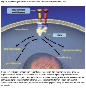 Een cel kan zich maligne gaan gedragen als de controle op geordende en gereguleerde celdeling verstoord raakt. Bij de normale strikte controle zijn zeer veel verschillende eiwitten betrokken die een cascade aan reacties in werking kunnen zetten. Dit worden ook wel signaleringsroutes genoemd. Een voorbeeld hiervan is een receptor voor een groeifactor op de celmembraan, die na activatie de cel kan stimuleren tot groei en proliferatie. In kankercellen zijn dergelijke signaleringsroutes ontspoord, zodat ze ongelimiteerd gaan delen en uitzaaien . Twee belangrijke groepen geneesmiddelen richten zich tegen ontspoorde signaleringsroutes: de monoklonale antilichamen en de tyrosinekinaseremmers (TKI’s).