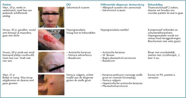 Binnen een aantal weken hadden we de eerste consulten al digitaal ingestuurd. Dermatologen uit het ziekenhuis in Veghel beoordeelden onze foto’s en hielpen ons zeer goed verder. Binnen drie dagen krijg je al een mailtje dat het antwoord voor je klaarstaat op de site. Eén keer had de dermatoloog zelfs op vrijdagavond geantwoord… aan kantoortijden niet gebonden! Zie onderstaand vier aangeboden casussen ter illustratie.