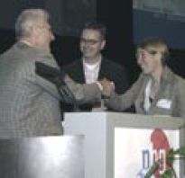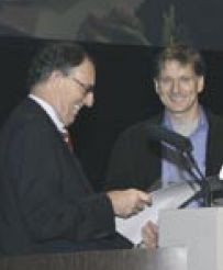 NHG-Bestuursvoorzitter Arno Timmermans sluit het congres formeel af en dankt alle mensen die een bijdrage hebben geleverd. Vooral lauwert hij congresvoorzitter Theo Voorn voor zijn werk aan dit congres, en niet alleen daarvoor: ‘Toen Theo in ’91 lid werd van het Dagelijks Bestuur van het NHG, was hij al jarenlang actief in de congresorganisatie. We zijn de tel kwijt geraakt en weten niet of dit nu het 27ste of 28ste congres is waarbij hij betrokken is geweest. Bovendien was Theo enkele jaren hoofd van de NHG-afdeling Advisering en Scholing. Zijn enthousiasme en ideeënrijkdom waren soms lastig, maar altijd inspirerend. En zijn ambassadeursfunctie en netwerken zijn zeer belangrijk gebleken. Hij heeft het NHG dan ook altijd op uitzonderlijke wijze gediend.’ Theo Voorn wordt dan ook uitgeroepen tot ‘lid van verdienste’ van het NHG. Daarvan zijn er niet veel (met Siep Thomas meegeteld, die twee dagen tevoren eveneens lid van verdienste is gemaakt, zijn er nu elf). Maar in het geval van Voorn is de onderscheiding wel heel bijzonder: hij en Vic Tielens zijn welgeteld de enige Nederlandse huisartsen die erelid zijn van de LHV én het NHG! De zaal gaf uiting aan de alom gevoelde waardering voor het werk en de persoon van Theo Voorn in een lange, staande ovatie.