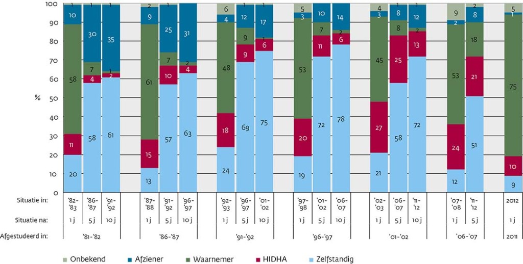 Door de jaren heen zijn de loopbanen van huisartsen veranderd en werkt een groter deel van hen na de opleiding langer als HIDHA of waarnemer, voordat ze praktijkhouder worden.