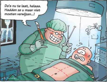 Het lijkt me goed als er nóg een paragraafje aan wordt vastgeplakt, waarin staat wat voor cultuur de patiënt tijdens zijn bezoek aan de tweede lijn verwachten kan, zodat die zich kan voorbereiden op de totaal andere wereld waarin hij terecht komt. Want welke huisarts zou tussen neus en lippen door zeggen: ‘Niet dat ik er wat van verwacht, maar misschien is het iets om de cardioloog te vragen éven in uw hart te kijken!’