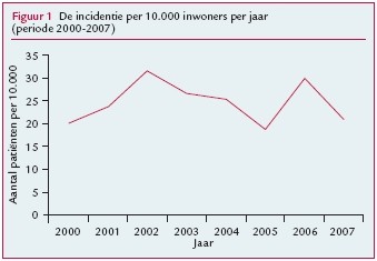 Waterpokken is een kinderziekte: naar schatting heeft meer dan 90% van de kinderen op jonge leeftijd een varicella-infectie doorgemaakt. Slechts een klein deel van hen bezoekt de huisarts. Gemiddeld zien huisartsen jaarlijks tussen de 20 en 32 patiënten met waterpokken op de 10.000 ingeschrevenen. In 2002 en 2006 traden epidemieën van waterpokken op (figuur 1). Het zijn vooral kinderen in de leeftijdsgroep van 1 tot 4 jaar, maar ook relatief veel baby’s, die bij de huisarts komen (figuur 2). Bij volwassenen komt waterpokken slechts sporadisch voor (minder dan 1 per 1000 inwoners per jaar).
