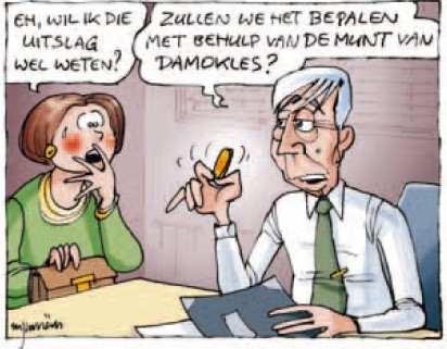 De vrouw weet dus onmiddellijk als alles goed is gegaan, maar als de dokter geen commentaar geeft, kan dat ook komen doordat de munt op ‘Zwijgen’ kwam, en zou het nog goed kunnen aflopen. Als de uitslag goed is, zal ze het ten slotte horen.