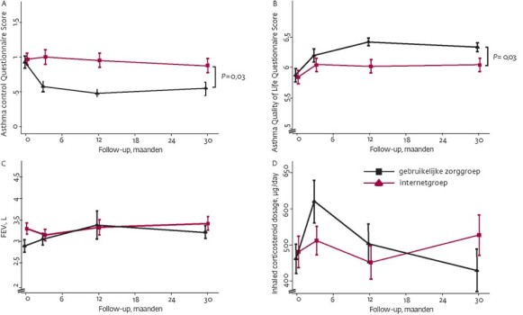 Verbeteringen in de kwaliteit van leven en astmacontrole blijven behouden bij patiënten die gedurende een jaar gebruik hebben gemaakt van zelfmanagementondersteuning via internet, zelfs tot anderhalf jaar nadat ze de ondersteuning hadden beëindigd.