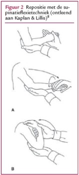 Gunstig effect. Onderzoekers randomiseerden 148 kinderen.10 Uiteindelijk werd het resultaat bij 135 kinderen gerandomiseerd. Met de pronatietechniek bereikte men bij de eerste poging tot repositie bij 80% een succesvol resultaat; met de supinatiemethode was dit 71%. De OR was 0,59 (95%BI 0,27-1,29). Bij een ander onderzoek waren 75 kinderen betrokken, waarvan er 72 gerandomiseerd werden.11 De pronatiemethode was bij de eerste poging in 92% succesvol, terwijl dit met de supinatietechniek 84% was. De OR was 0,48 (95%BI 0,11-2,11). In een derde onderzoek randomiseerde men 85 kinderen: 41 werden behandeld met de pronatiemethode, 44 met de supinatietechniek.8 De pronatiemethode was bij 95% effectief na de eerste poging; bij 77% was de supinatietechniek meteen effectief. OR 0,17 (95%BI 0,04-0,85). Een tweede repositiepoging al dan niet met een andere techniek was in alle gevallen succesvol. Blindering was bij deze onderzoeken overigens niet mogelijk, zodat bias niet uitgesloten kan worden. Nadelig effect. Geen gemeld.