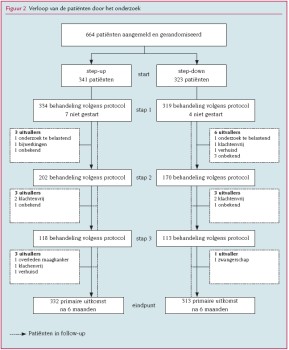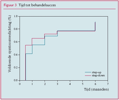 - De step-upbenadering bereikt uiteindelijk (na zes maanden) eenzelfde resultaat, tegen gemiddeld minder kosten.